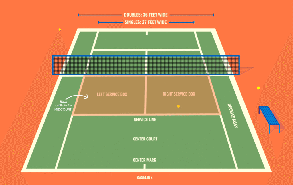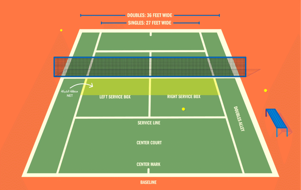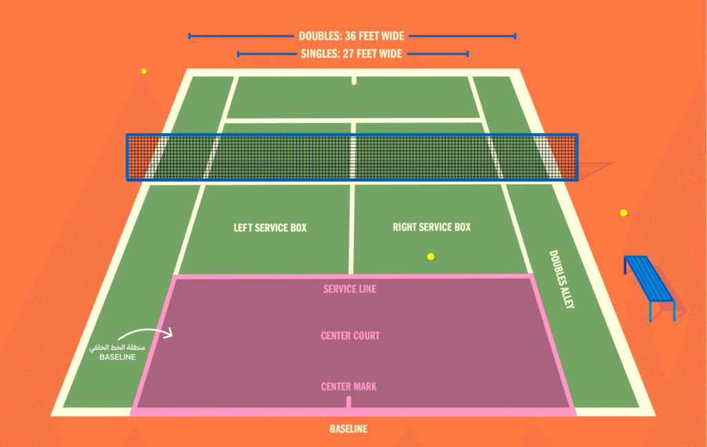 في رياضة التنس، كل جزء من الملعب له وظيفة تكتيكية محددة. تنقسم أرضية اللعب إلى ثلاث مناطق رئيسية، وكل منطقة تتطلب أسلوبًا مختلفًا في التحرك، الضرب، واتخاذ القرار.
